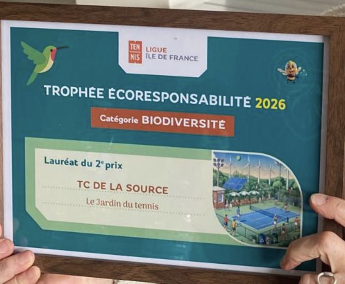 Le samedi matin, Armelle et Éric Segala ont représenté le club lors du 2ᵉ Colloque Développement Durable organisé par la Ligue Île-de-France de Tennis. À cette occasion, nous avons eu l’honneur de recevoir le 2ᵉ prix dans la catégorie Biodiversité, décerné par un jury composé à parts égales de licenciés et de représentants de la Ligue. Cette distinction, attribuée au nom de la Ligue Île-de-France et du Comité du Val-d’Oise, vient saluer notre engagement dans la Coupe de France du Potager des clubs de tennis. Elle s’accompagne d’un lot d’une valeur de 600 €, à utiliser auprès de la société BOUNCE, spécialisée dans la pressurisation des balles de tennis.