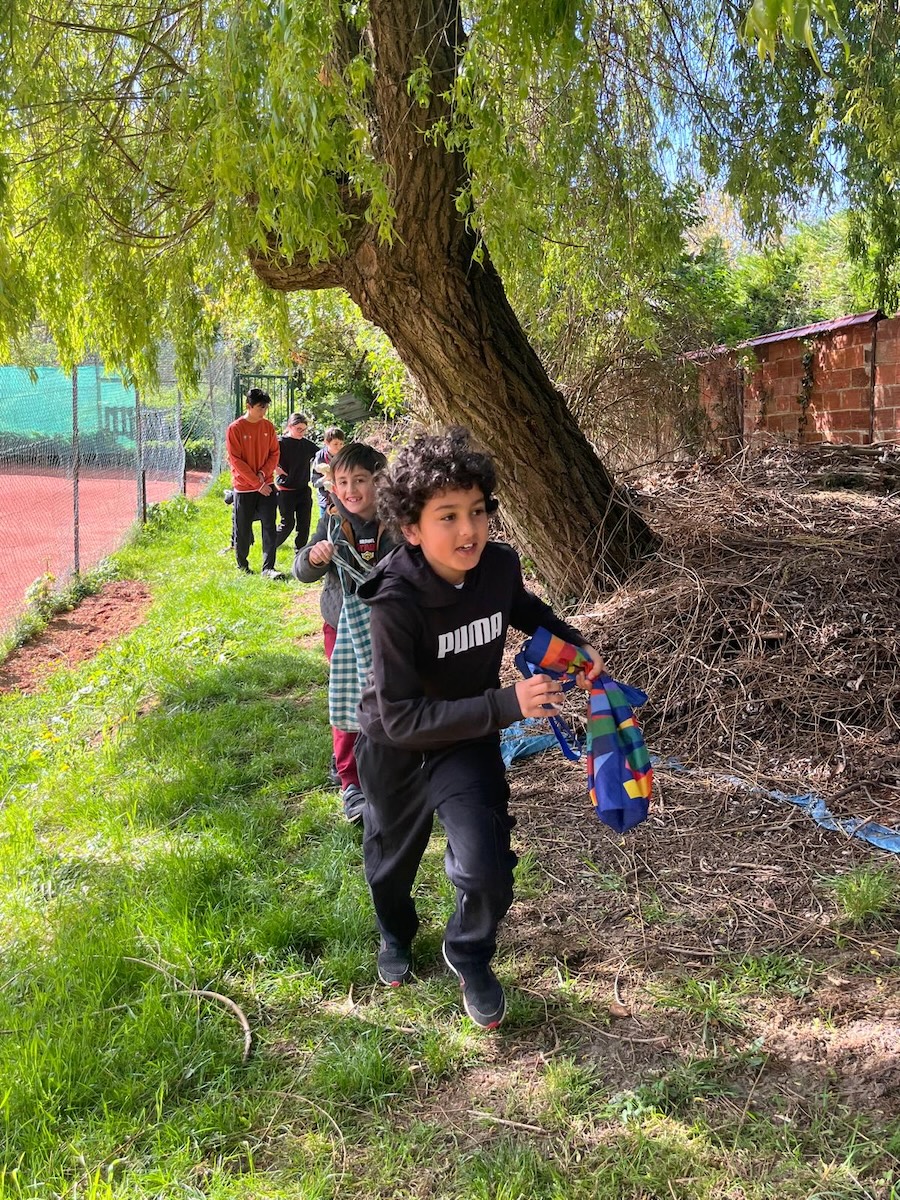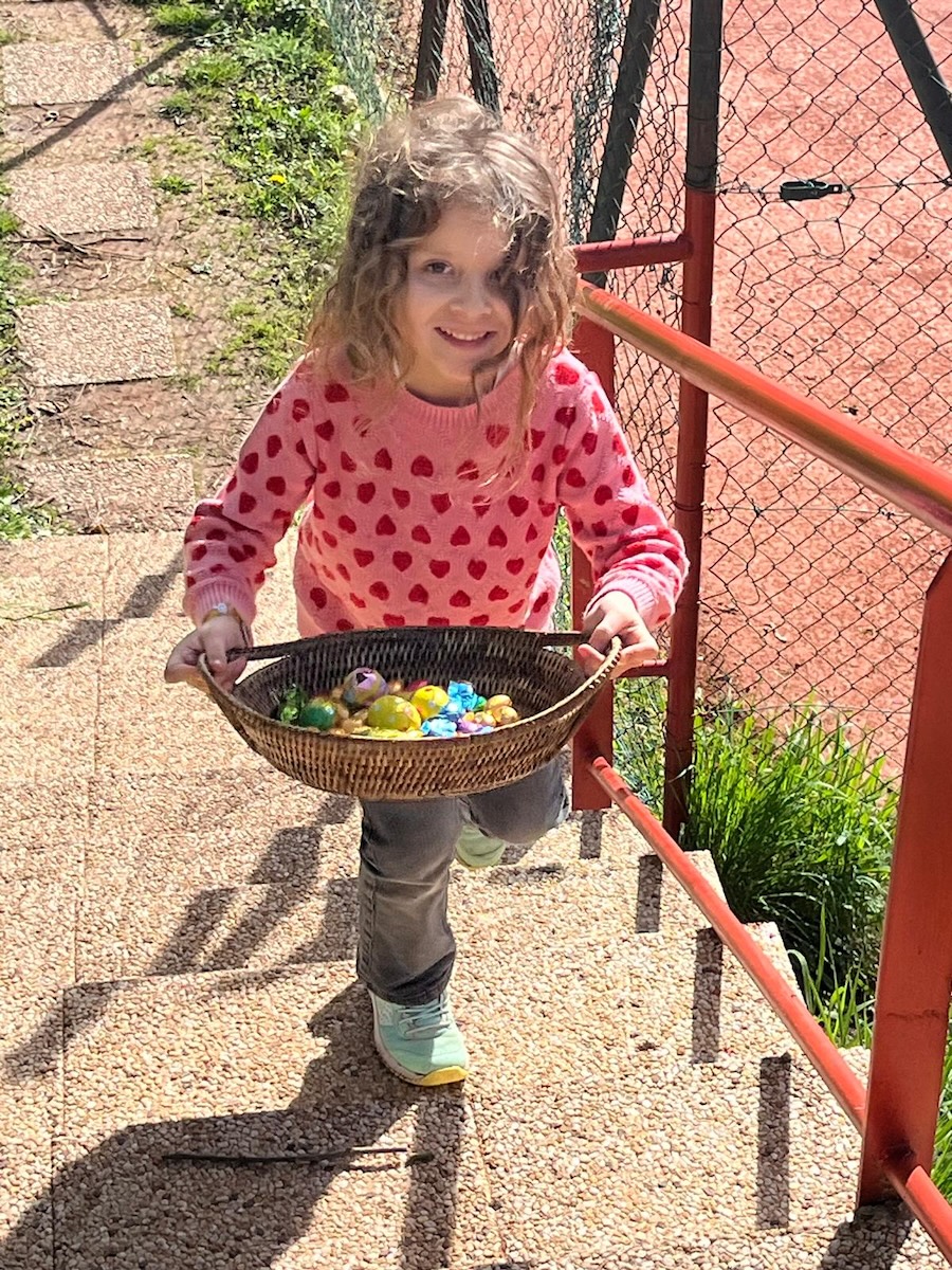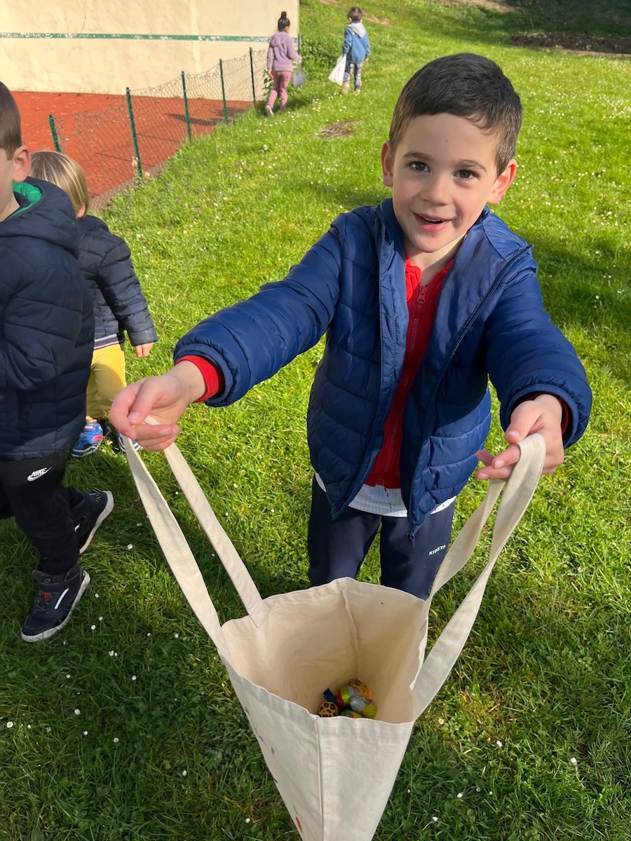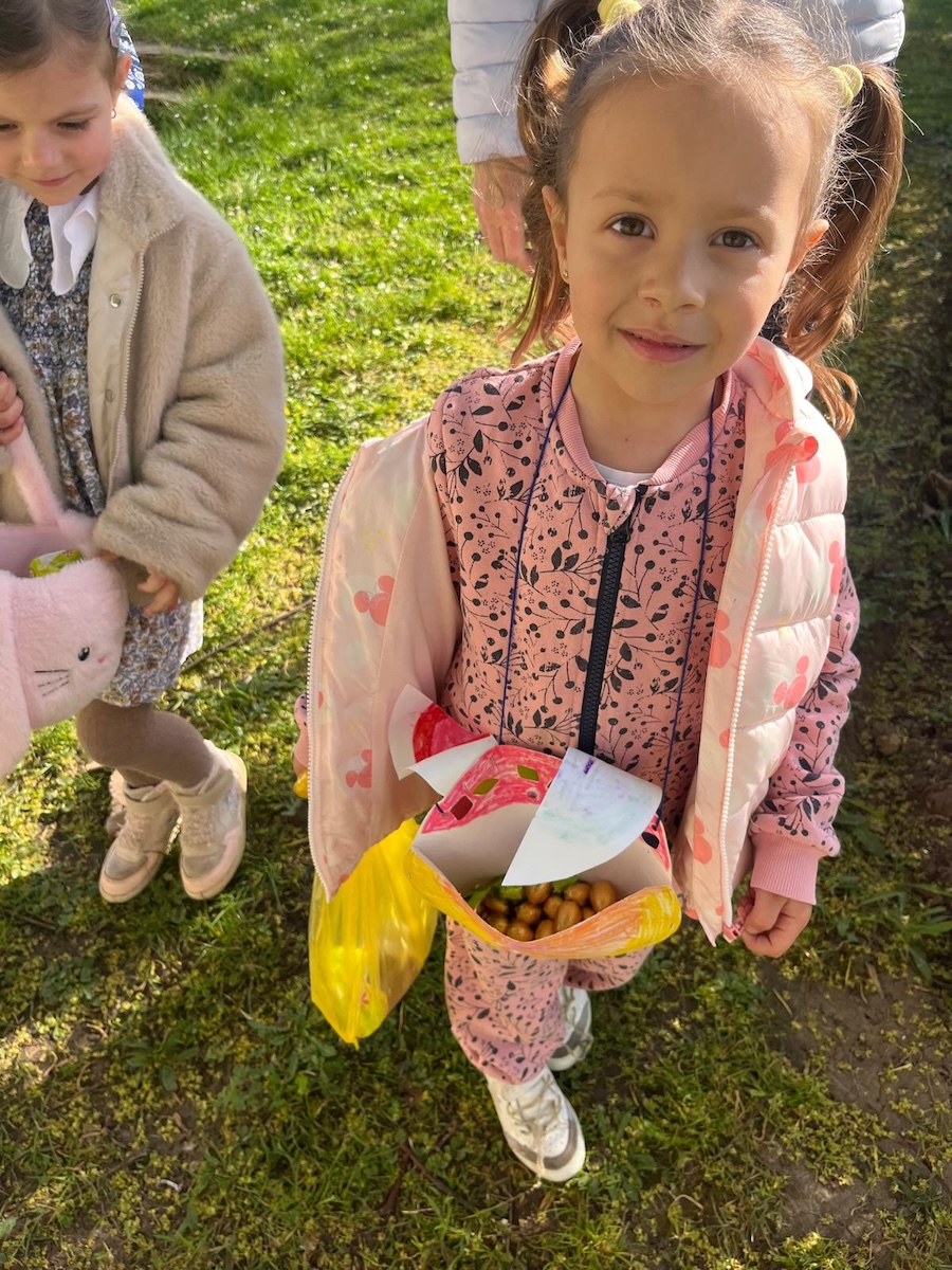 Sous un magnifique soleil, il fallait aller rapidement chercher les 20 kg de chocolat éparpillés sur tout le terrain de notre parc avant ……… qu’ils ne fondent.